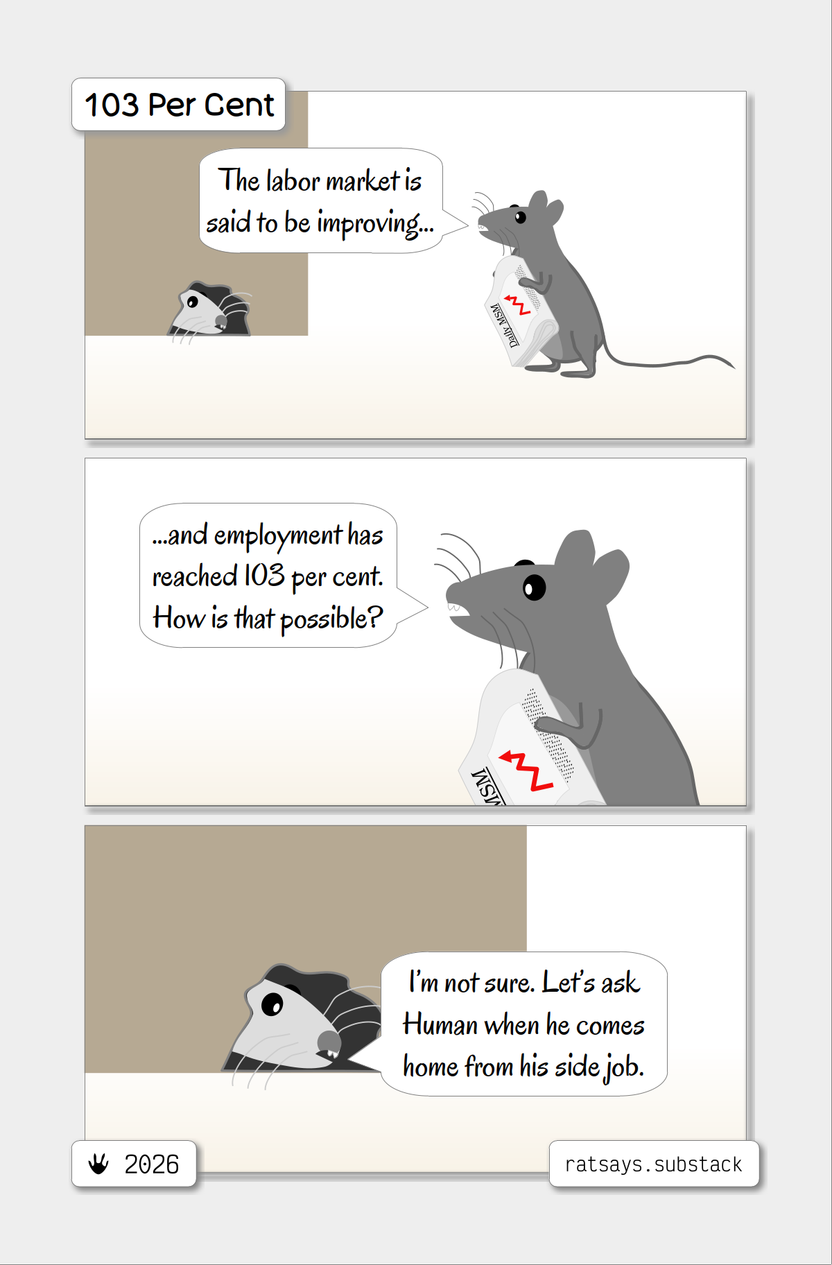 Rat: — I’m not sure. Let’s ask Human when he comes home from his side job.