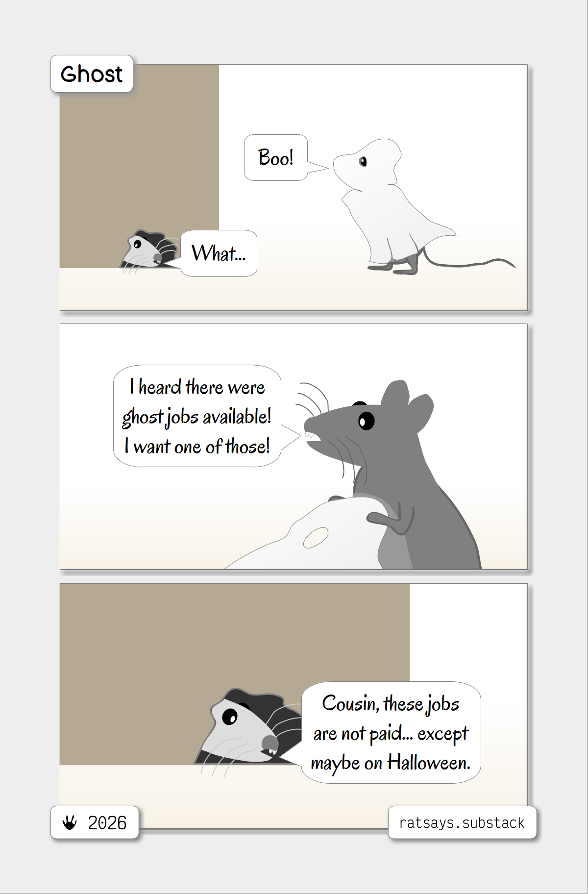 Rat: — Cousin, these jobs are not paid... except maybe on Halloween.