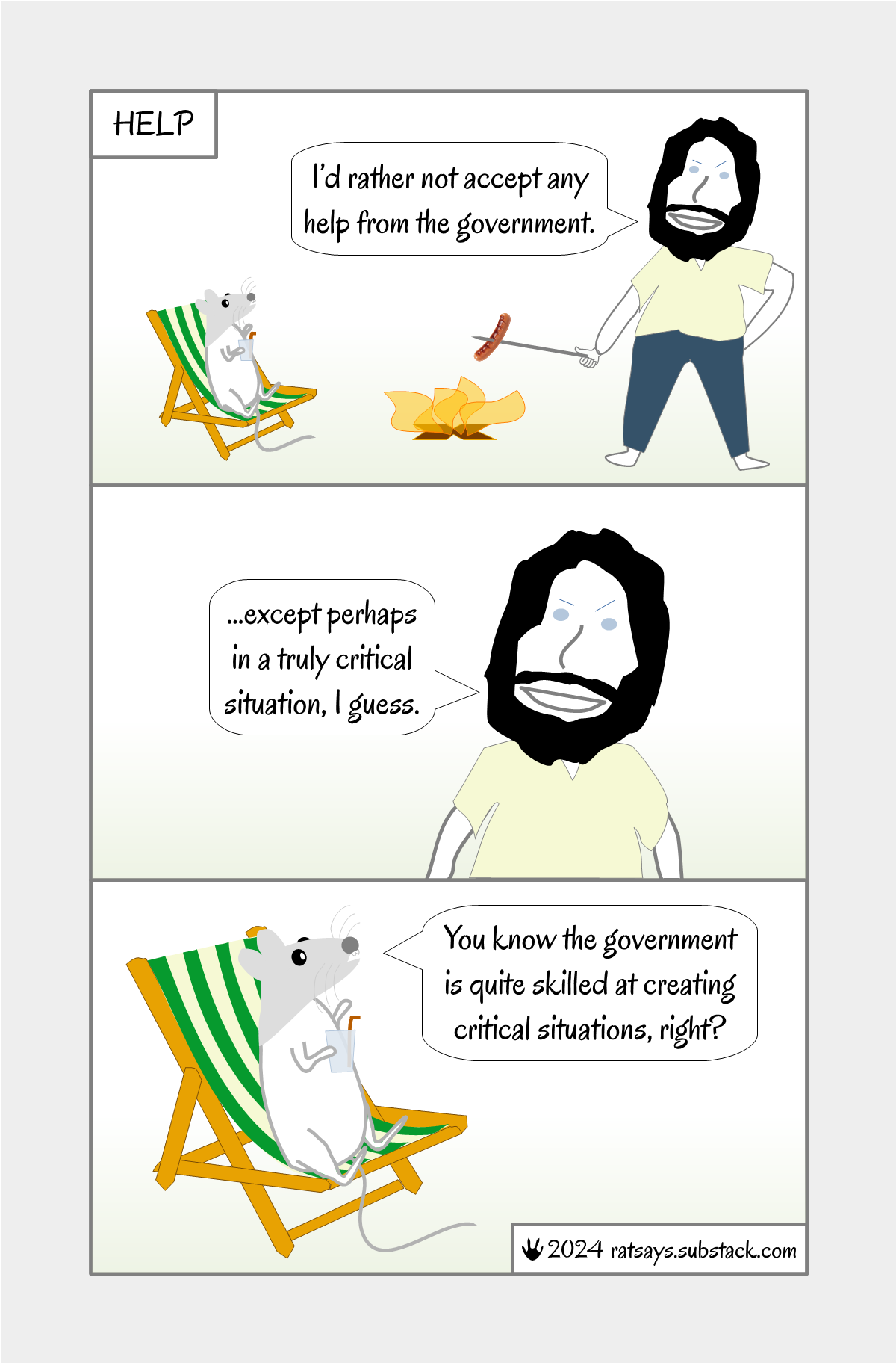 Wait, you mean the government manufactures crisis to get you dependent on their help?!?!?!? 🤯