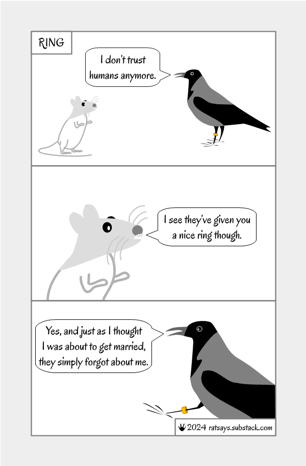 RingIn which Rat learns a sad storyMay 31, 20245646ShareGood time of day, humans!It’s Friday, and we haven’t had a silly moment for quite some time. This must be corrected.ShareSpring Cheese: May 31 is the last day for now when you can support Rat at a 38.2% discount.PreviousNext