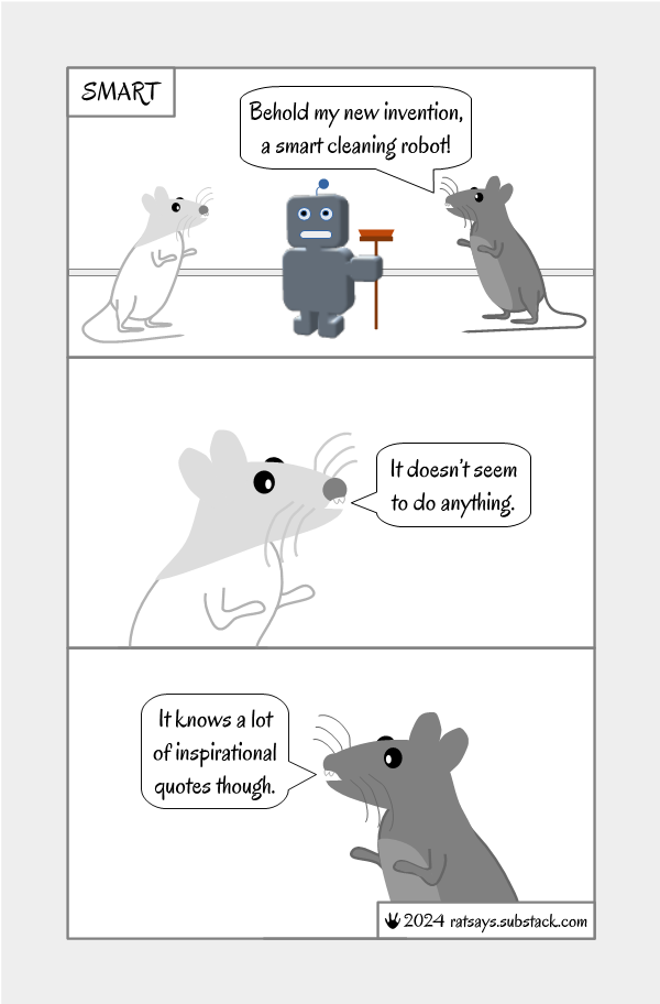SmartIn which Rat is mildly disappointedJul 19, 20247378ShareGood time of day, humans!Despite silly time of the week, rats are still looking for ways to make life better…SharePreviousNext