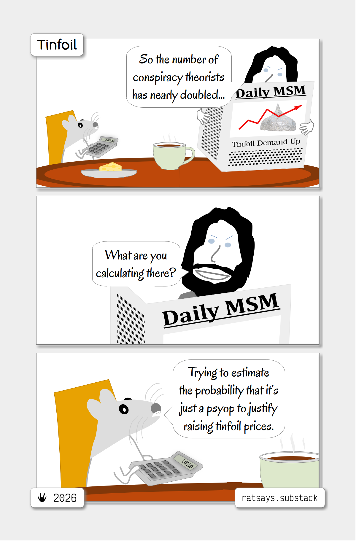 Rat: — Trying to estimate the probability that it’s just a psyop to justify raising tinfoil prices.