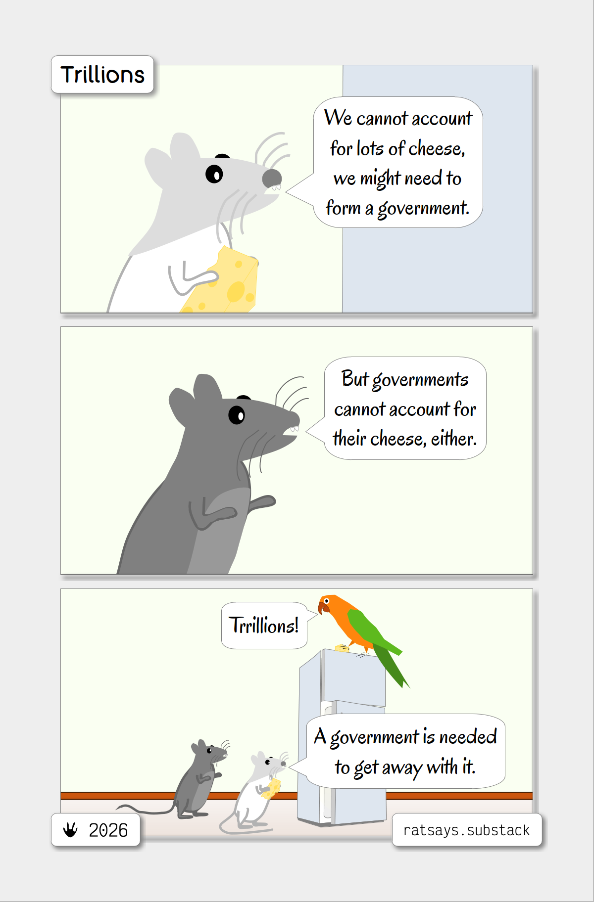 Rat: — We cannot account for lots of cheese, we might need to form a government.