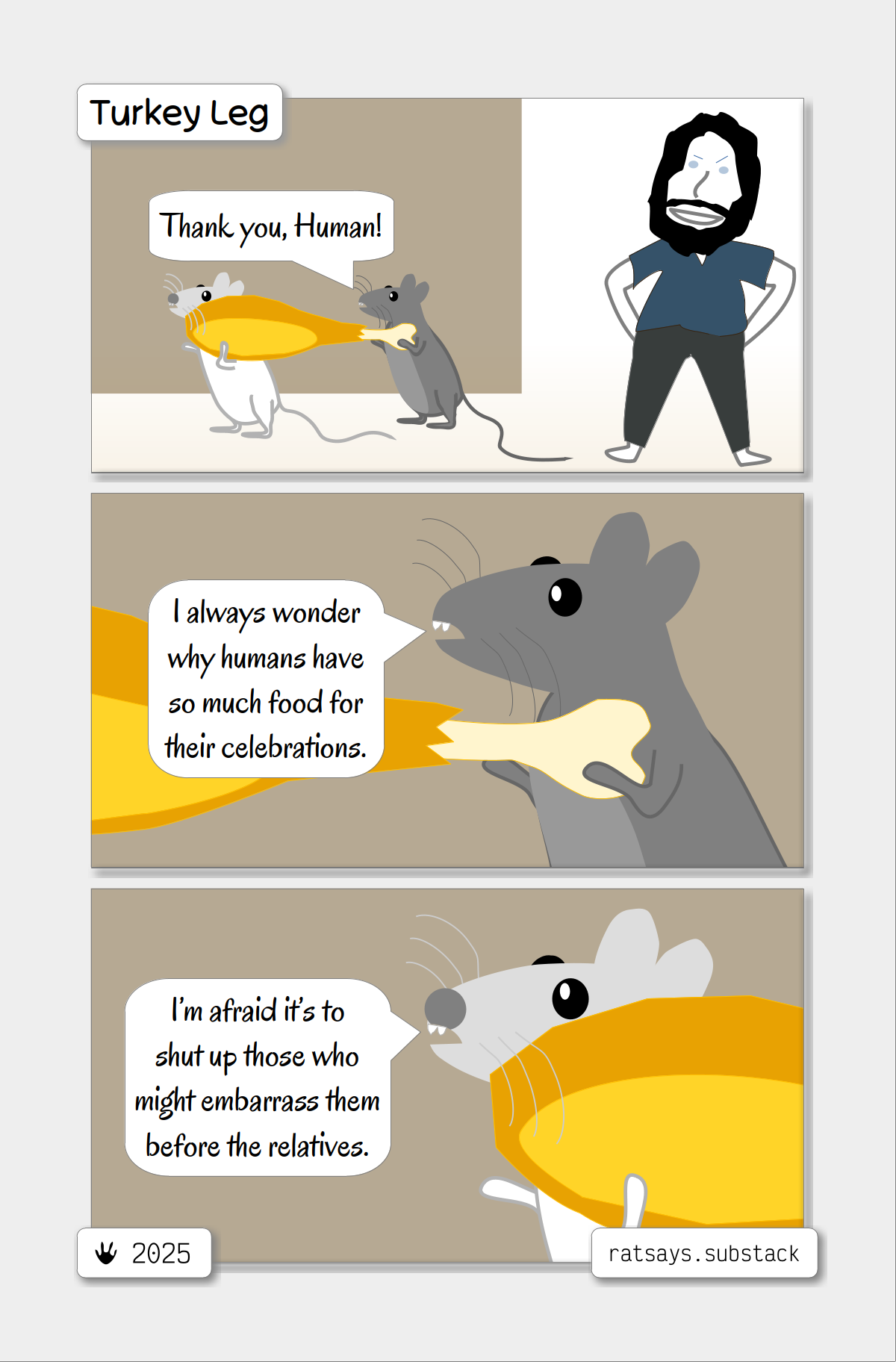 Cousin: — I always wonder why humans have so much food for their celebrations.